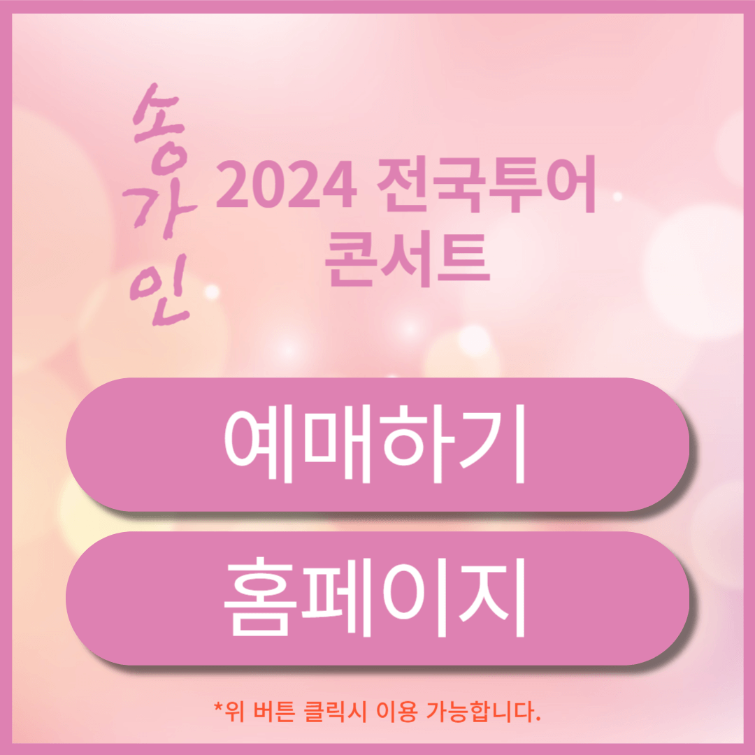 대한민국 트롯 열풍의 주역인 미스트롯1의 진으로 전국민의 사랑을 받는 송가인 가수의 전국투어 콘서트를 만나볼 수 있는 선물 같은 기회가 찾아 왔습니다. 올해는 가인의 선물이라는 타이틀로 서울, 인천등 도시에서 팬들과의 만남을 가질 예정입니다.